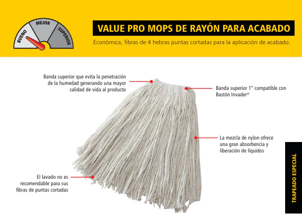 - Diseñado para un trapeado húmedo de uso general, económico y práctico.