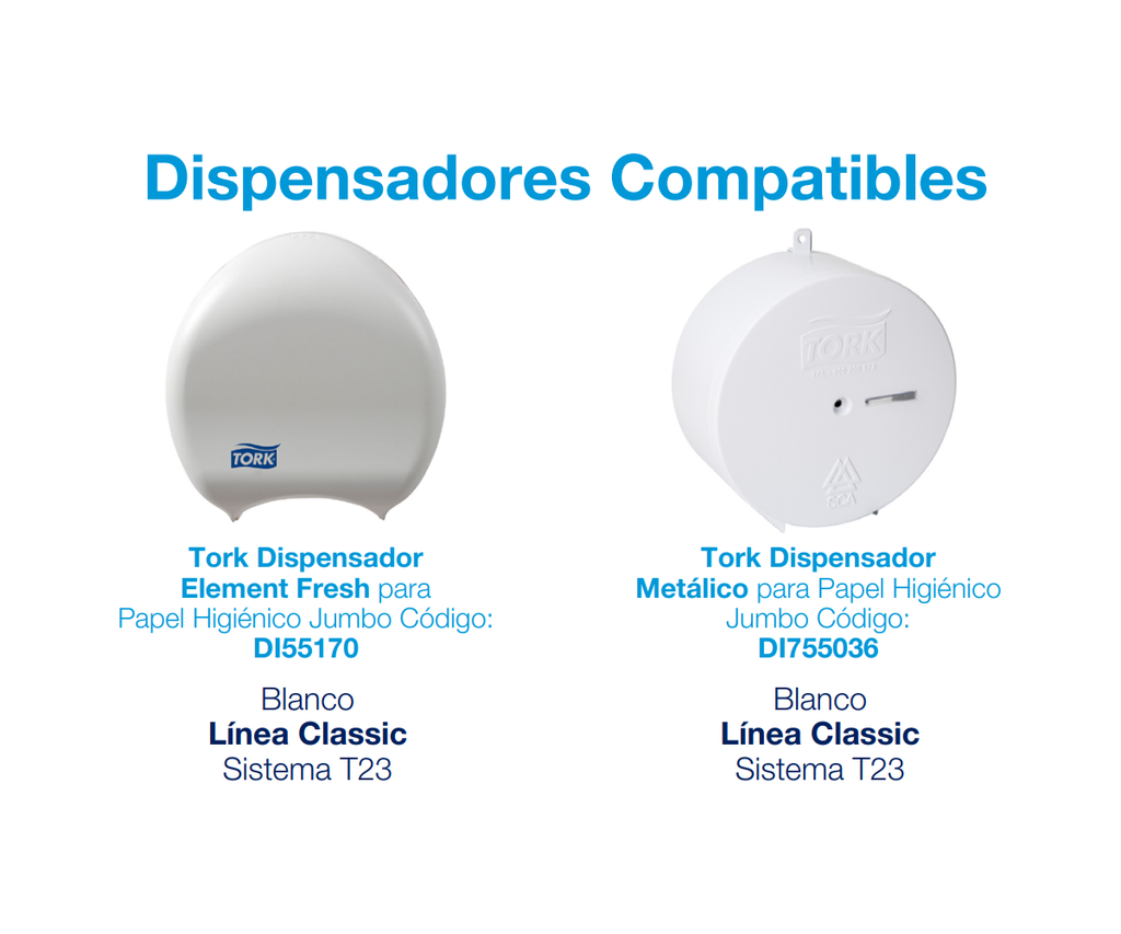 El Papel Higiénico Tork Jumbo 250 metros (Sistema T23) es la alternativa ideal para baños de tráfico medio a alto, combinando suavidad, absorción y eficiencia en un solo producto. Su hoja doble de calidad Premium brinda una experiencia superior al usuario, mientras que el diseño gofrado aporta una presentación más elegante.